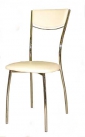 Стул «Омега 4».Цена 2 690руб.Материал: хром, на сиденье — кож. зам. или ткань (цвет на выбор).Варианты спинки: мягкий (кож. зам.), твердый (МДФ + пленка PVC).Обивка сиденья на фото: кож. зам. светлый.Спинка на фото: кож. зам. светлый.