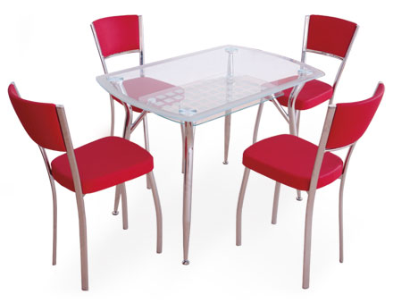 Стол «КСР».Цена 8 040 руб.Размер столешницы, мм: 700×1050.Материал: хром, стекло.Стул «Альфа».Цена от 2 200 руб.Материал: хром, кож. зам., ткань, цвет на выбор.Модель на фото: хром, кож. зам.Производитель: Россия.