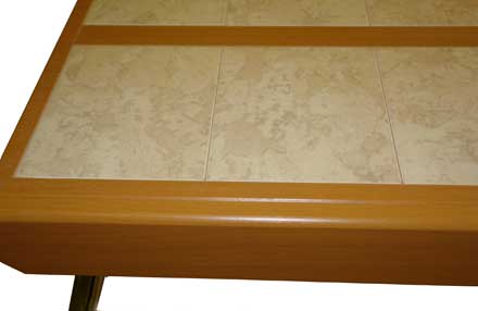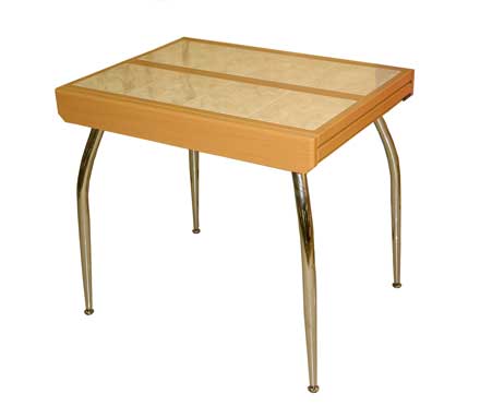Стол «Альфа». Цена 12 900 руб. Размеры столешницы, мм: 650×850(1700). Материал: Керамическая плитка термостойкая + пленка РVС. Цвета столешницы: бук, вишня, орех, махагон, венге, серый. Цвет столешницы на фото: бук. 4 варианта плитки. Плитка на фото: 98.