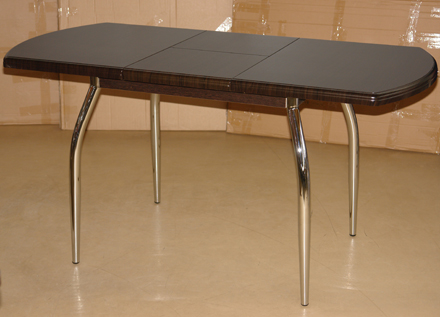 Стол «Толедо ПО»Цена модели на фото 11 190 руб.Габариты столешницы, мм: 700×1100(+370), полуовал.Материал: МДФ, пленка РВС, хром.