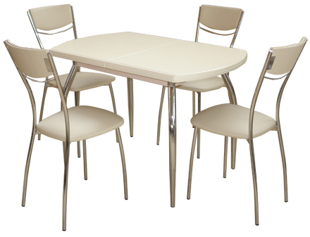 Галерея столов и стульев / Каталог / Столы / Раздвижной стол из МДФ «Толедо ПО», мягкий стул «Омега-4»