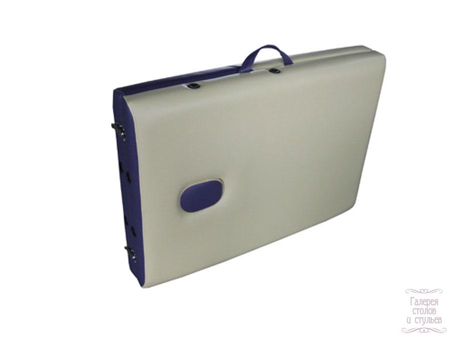 ЭКСПЛУАТАЦИОННЫЕ КАЧЕСТВА Допустимая нагрузка 250 кг Вес Описание Вес Стол без доп.оборудования 17 кг. Полный комплект 18.8 кг. Сумка переносная 1 кг. Вес брутто 21.4 кг. Материал высокопрочная стальная подвеска из трубчатых рам; прочный деревянный каркас; эластичный газонаполненный пластик на основе полиуретана — 5 см. Отделка экологически чистый воздухопроницаемый кожзаменитель; округленные борта. Конструкция Двухсекционная эргономическая. Эластичный шнур предохраняет натяжной трос от попадания между секциями во время складывания. Подголовник Съемный регулируемый подголовник с плавной бесступенчатой регулировкой угла наклона. Регулирование высоты 62—88 см Вырез для лица Помимо люверса (выреза) для лица есть валик для заглушки люверса. Отличительные особенности Съемные подлокотники для рук, которые в зависимости от вида процедуры могут сниматься; дополнительный ремень для фиксации рук. Дополнительно Уникальная переносная сумка. Дополнительные опции: переносная сумка