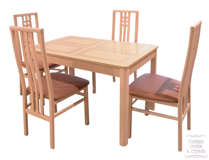 Стол «Ницца» Размер, мм: 700×1100 (+40) Материал: ЛДСП, стекло, деревянные ножки Цена 15 740 руб. Стул «Монзано» Материал: массив, ткань Цена 2 200 руб.