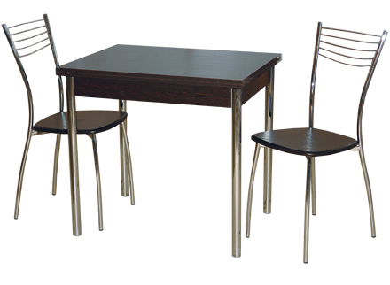 Стол «Питер» раскладнойРазмер, мм: 800×600(+600)Материал: ДСП, дерево, цвет венге.Цена 6 290 руб.Стул «Омега-1»Материал: кож.зам, хромЦена 2 540 руб.