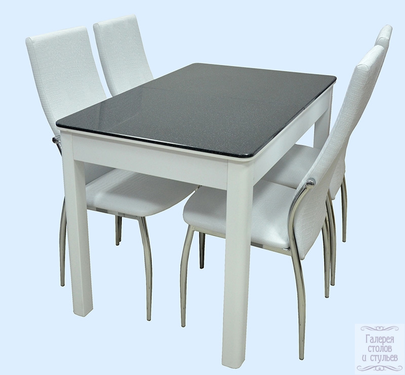 Турин-2 Раздвижной прямоугольный стол . Комбинированная столешница: ЛДСП 10 мм и искусственный камень 12 мм. Центральная вставка — «бабочка» шириной 32 см позволяет легко разложить стол. Искусственный камень естественных расцветок является ударопрочным, материалом. Полированная поверхность камня обладает мягким блеском. Торец ЛДСП облицован ПВХ-кромкой толщиной 2,0 мм. Размеры 70×110(+40)см. Подстолье — крашеное в цвет каркаса. 4 цвета каркаса, 4 цвета камня. Цена 14140 руб.