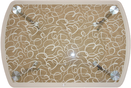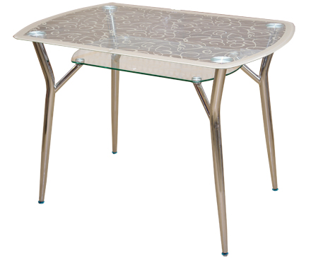 Стол «А6С-2»Цена 8 670 руб.Габариты, мм: 700×1050.Материал: хром, стекло закаленное с рисунком.