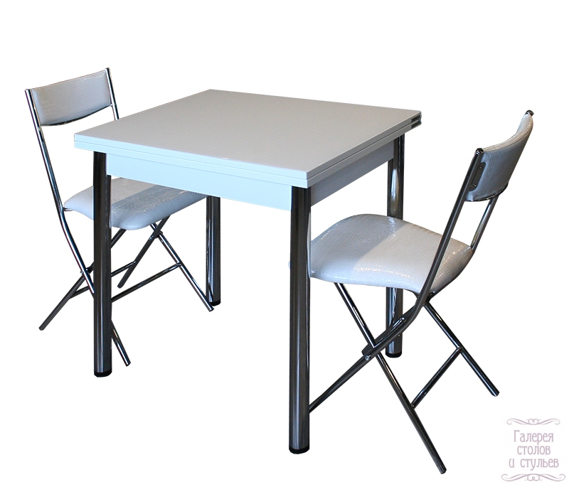 Характеристики товара: Размер — 80*60 (120) см. Материал столешницы — ламинат+закаленное стекло Материал опоры — Сталь Цвет опоры — Хром Вес — 22 кг